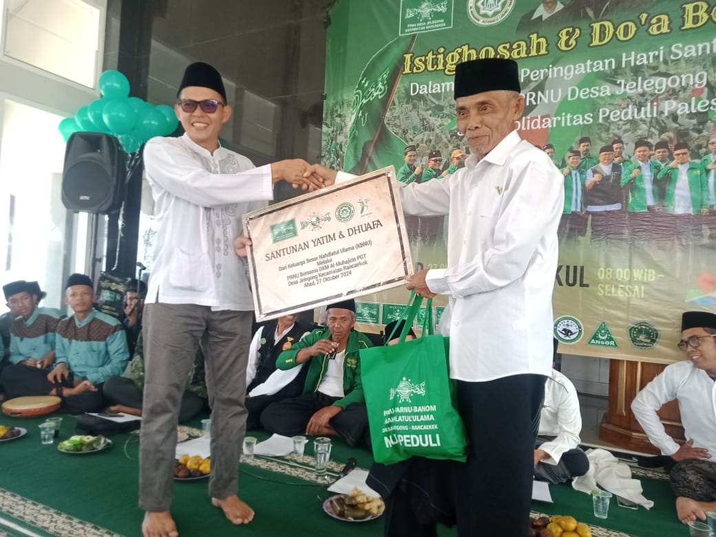 Hari Santri Nasional (HSN) 2024 yang diselenggarakan oleh Pengurus Ranting Nahdlatul Ulama (PRNU) Desa Jelegong menjadi momentum penting untuk memperkuat semangat kebersamaan dan kepedulian terhadap sesama, khususnya bagi anak-anak yatim dan kaum dhuafa. Acara ini berlangsung dengan penuh khidmat, diiringi dengan rangkaian kegiatan yang melibatkan seluruh lapisan masyarakat desa, mulai dari istighosah, santunan kepada anak yatim dan dhuafa, hingga doa bersama untuk keberkahan umat.